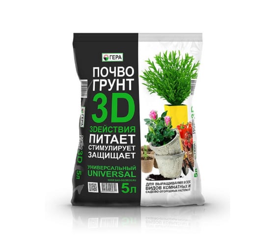 Почвогрунт ГЕРА 3D+ Универсальный 5 л 10...