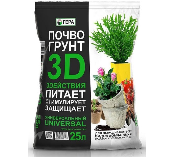 Почвогрунт ГЕРА 3D+ Универсальный 25 л 1...