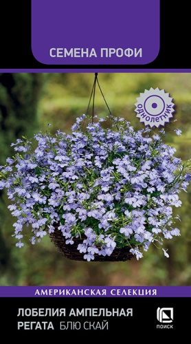 Ранняя серия ампельной лобелии! Растение образует изящный каскад с множеством миниатюрных цветков. Стебли сначала растут вверх, а затем ниспадают. Высота растения 15-20 см. Длина побегов 25-30 см. Окраска небесно-голубая. Великолепно подходит для подвесных корзин, кашпо, балконных ящиков.