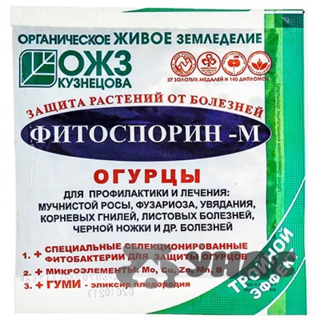 Фитоспорин - М биофунгицид для защиты растений от грибных и бактериальныхболезней. Эффективен против широкого спектра грибных и бактериальных заболеваний, в том числе против парши, увядания, черной ножки, фитофтороза, плесневения семян, корневых гнилей, гнилей всходов, мучнистой росы, бурой ржавчины, пыльной головни, пузырчатой головни, альтернариоза, ризоктониоза, фузариоза, септориоза и многих других.