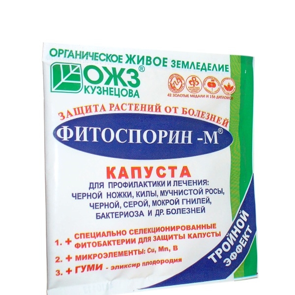 Фитоспорин-М КАПУСТА для профилактики и лечения: черной ножки, килы, мучнистой росы, черной, серой, мокрой гнилей, бактериоза и других болезней.